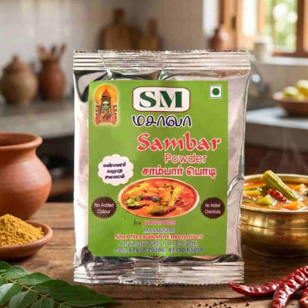 SM Sambar Powder is made with premium lentils and spices to give you the true taste of homemade South Indian sambar. Perfect for idli, dosa, rice, and vada.